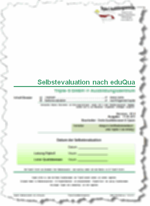 wir führen zusammen mit Ihnen die Selbstevaluation aus, als Basis für das weitere Vorgehen für die Erarbeitung der Zertifizierungsunterlagen (siehe Handbuch eduQua).